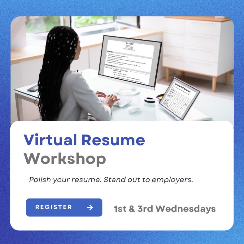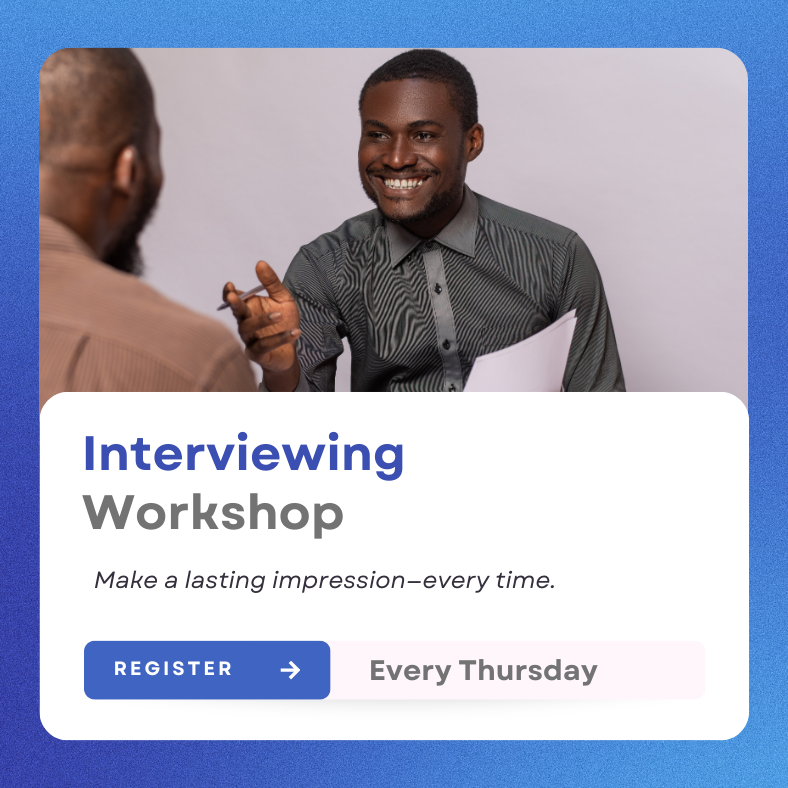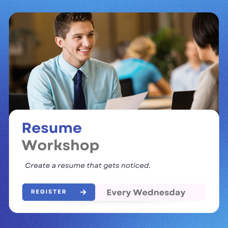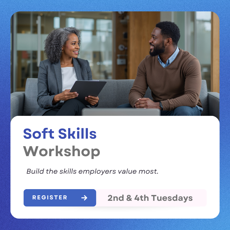 Whether you’re launching your career, making a transition, or aiming for your next big opportunity, our interactive FREE in-person and virtual workshops are designed to help you stand out in today’s competitive job market. Gain practical, job-ready skills, expert-led guidance, and confidence-building tools—all tailored to support your unique career journey.
